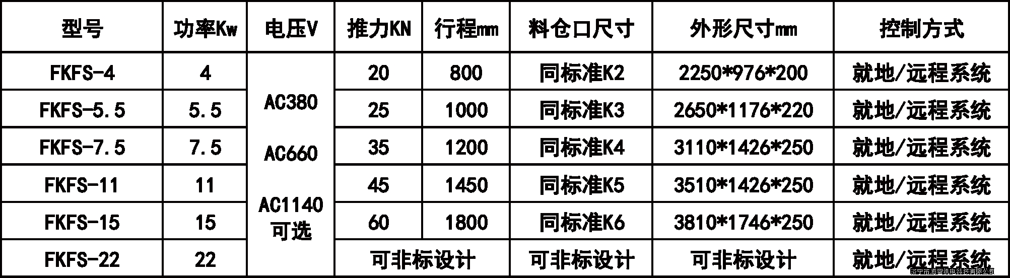2、給料機功率7.5 KW、11 KW、15 KW;
