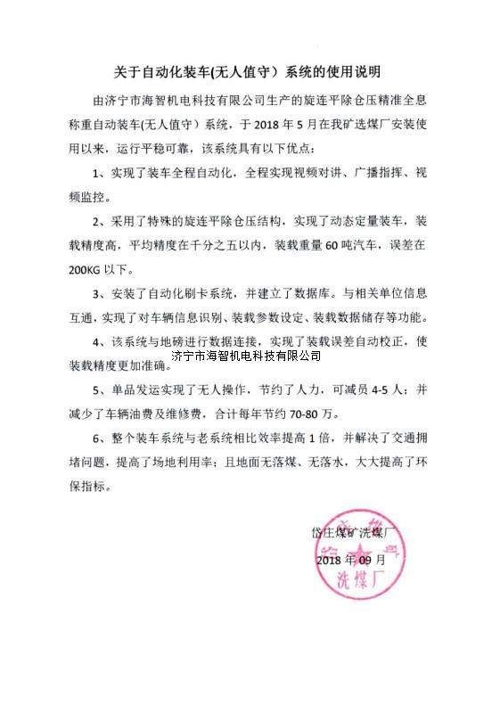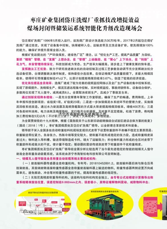 本產(chǎn)品一經(jīng)推出即獲得各大設(shè)計院及用戶的一致好評,率先在棗礦集團(tuán)岱莊煤礦取得成功應(yīng)用,2018年9月受邀參加了《棗礦集團(tuán)煤場封閉暨儲裝運(yùn)系統(tǒng)智能化升級改造現(xiàn)場會》,智能裝車系統(tǒng)得到了充分肯定!我司憑借雄厚的加工制造實(shí)力及過硬的創(chuàng)新技術(shù)能力,勢必為運(yùn)輸稱重系統(tǒng)、快速計量裝車系統(tǒng)帶來又一次的技術(shù)創(chuàng)新變革。